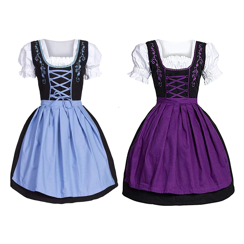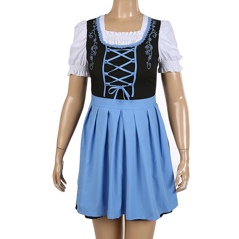 New Ladies Bavaria Oktoberfest Trachten Maid Kids Anime Front Lacing-Up Apron Dress Cosplay Halloween C