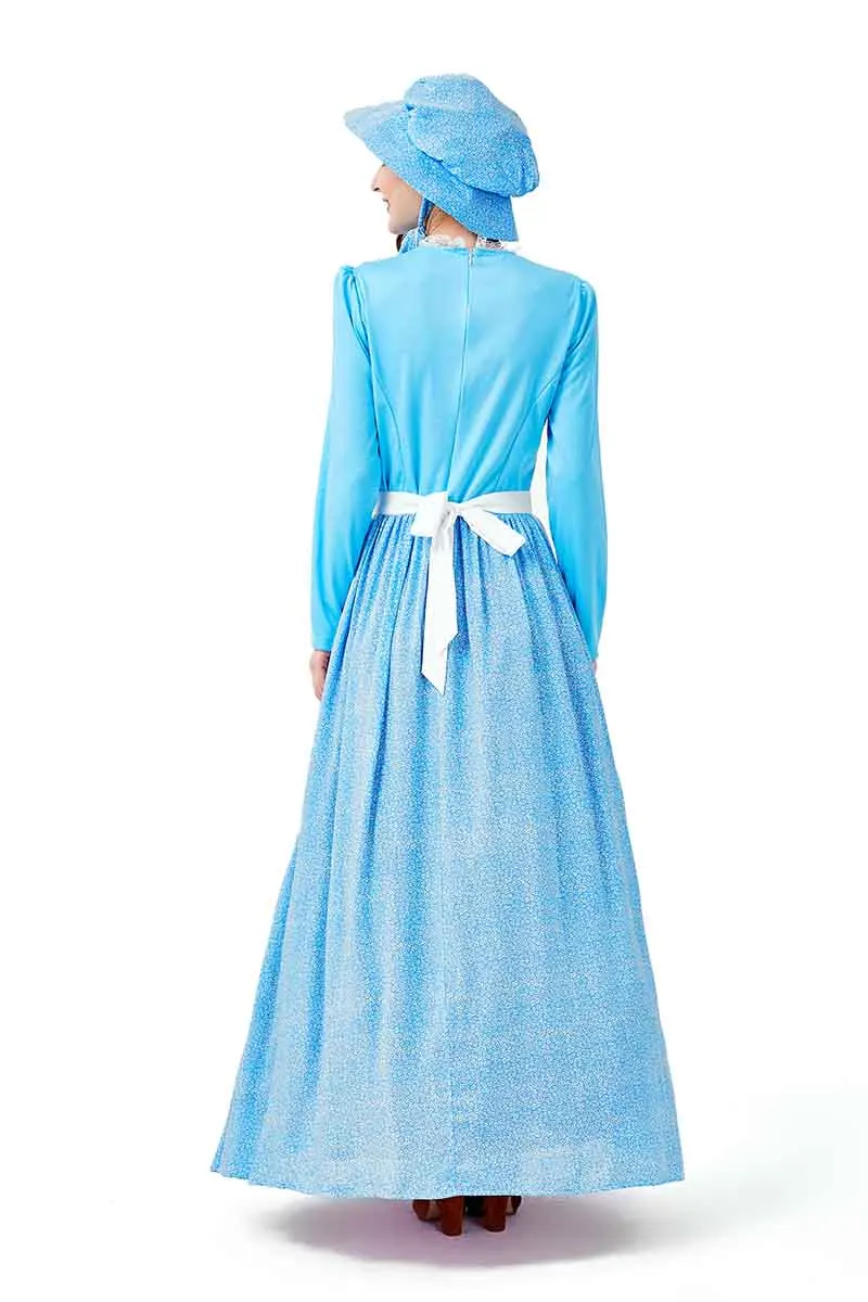 New Women Halloween Idyllic Farm Apron Maid Costume California Costumes Women's Pioneer Cosplay Blue Fa