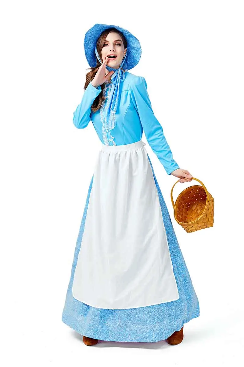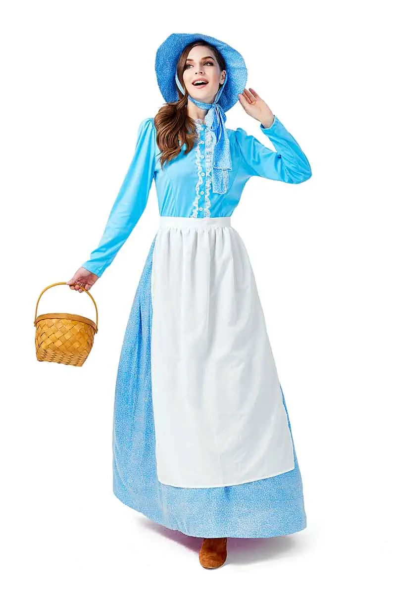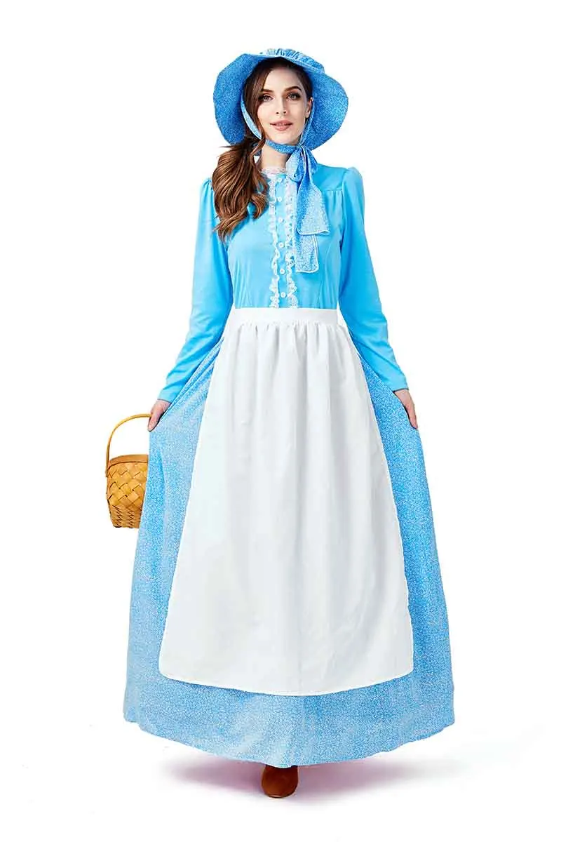 Promo Women Halloween Idyllic Farm Apron Maid Costume California Costumes Women's Pioneer Cosplay Blue Fa