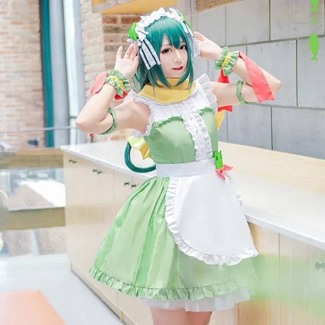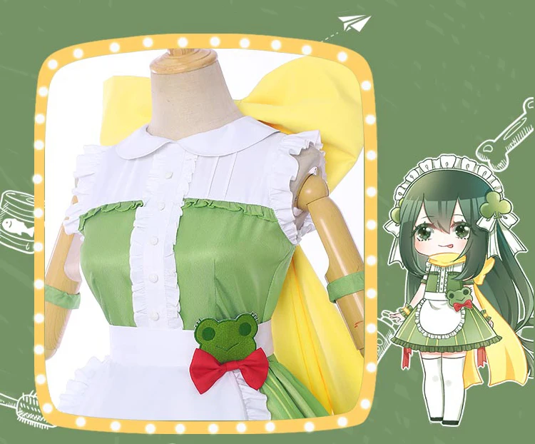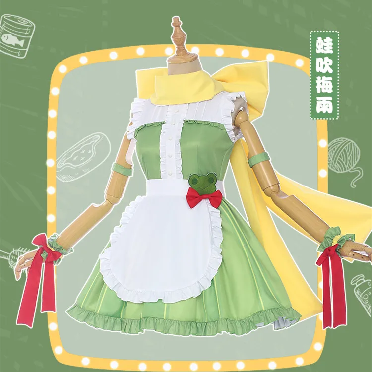 New Anime My Hero Academia Asui Tsuyu Cafe Maid Dress Cosplay Costume Coffee Maid Wear Apron Dress Unif