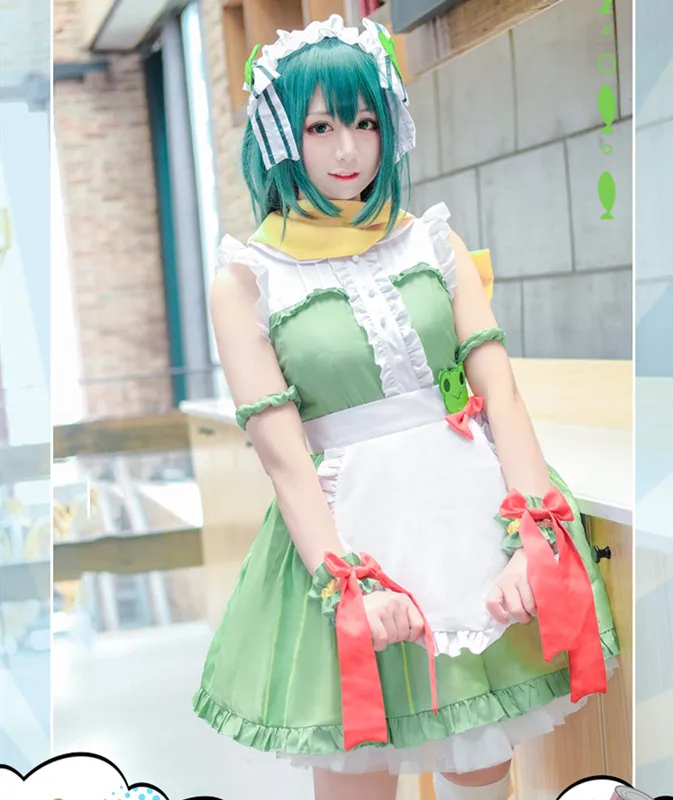 Best Anime My Hero Academia Asui Tsuyu Cafe Maid Dress Cosplay Costume Coffee Maid Wear Apron Dress Unif