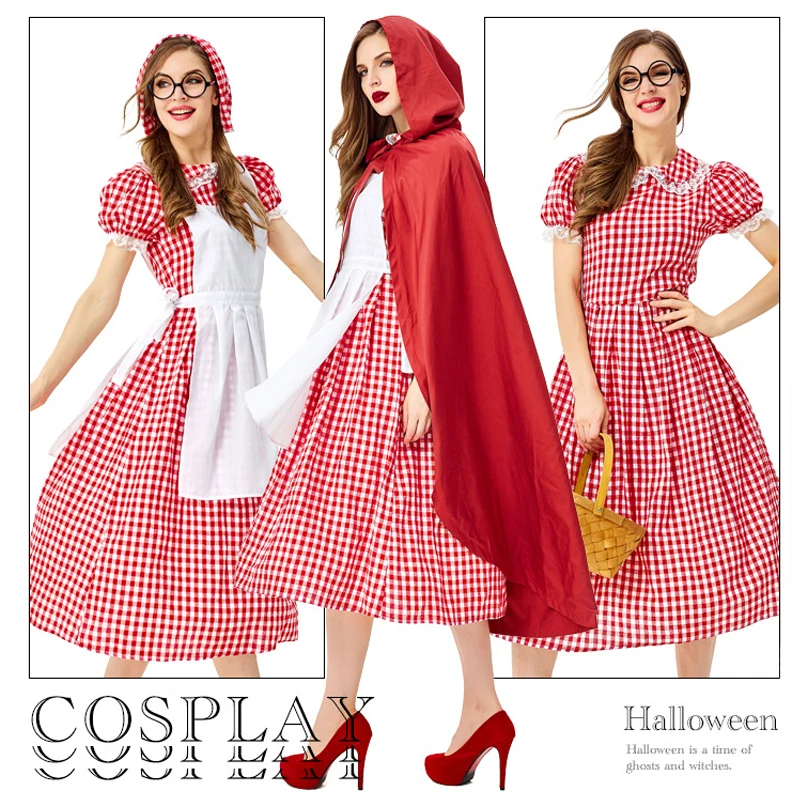 Buy Adult Women Little Red Riding Hood Cosplay Dress Girls Cloak Cape Apron Ladies Halloween Costume Pa