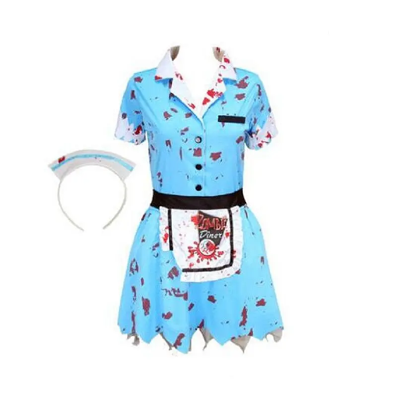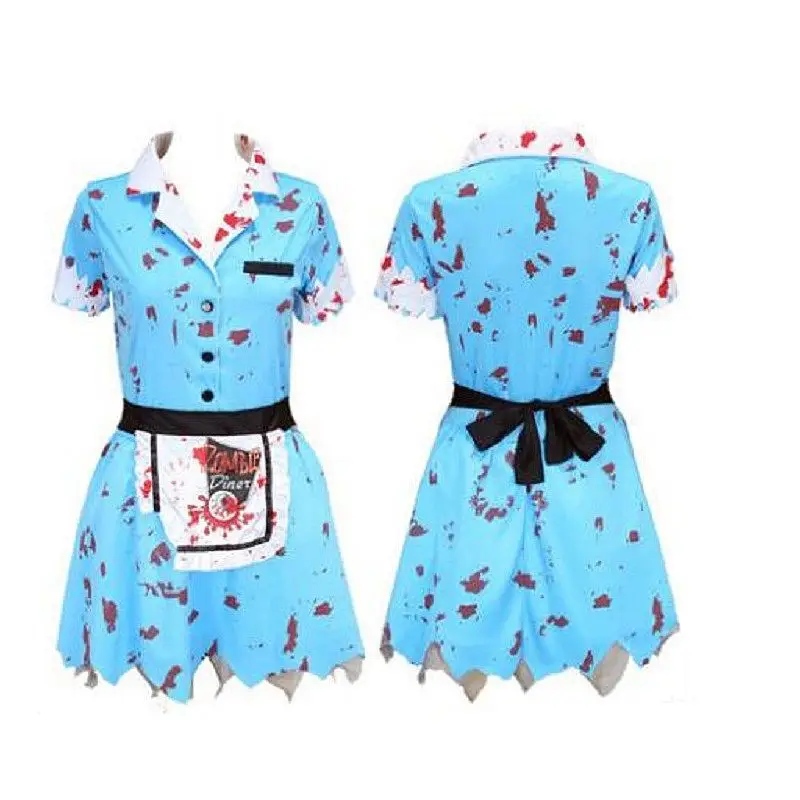 Promo NuoNuoWell Hot Sale Horrible Adult Bloody Barmaid Uniform Performance Apron Dress for Halloween Cos
